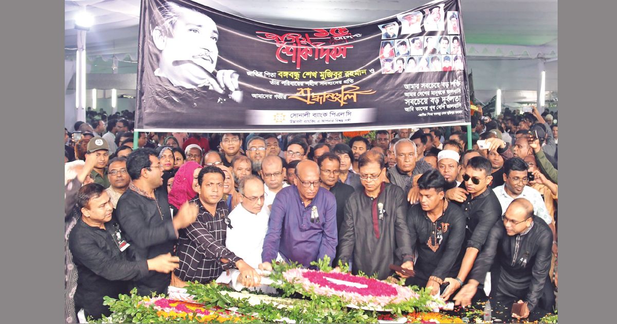 শোক ও শ্রদ্ধায় জাতির পিতা বঙ্গবন্ধু শেখ মুজিবুর রহমানসহ ১৫ আগস্ট নিহত শহীদদের স্মরণের মধ্য দিয়ে জাতীয় শোক দিবস পালন করেছে সোনালী ব্যাংক পিএলসি। গতকাল মঙ্গলবার ভোরে প্রধান কার্যালয়ে জাতীয় পতাকা অর্ধনমিত রাখার মধ্য দিয়ে জাতীয় শোক দিবসের কর্মসূচির সূচনা করা হয়।