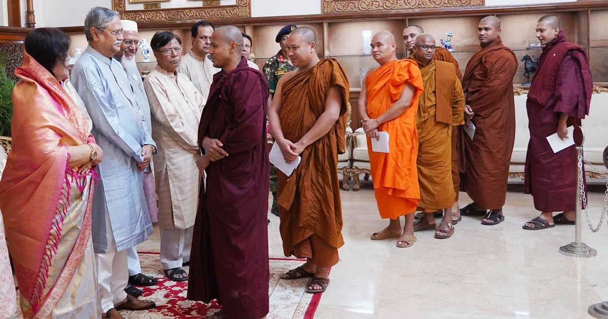 বৌদ্ধ ধর্মীয় নেতারা রাষ্ট্রপতি সাহাবুদ্দিনকে ফুলের তোড়া দিয়ে শুভেচ্ছা জানান।