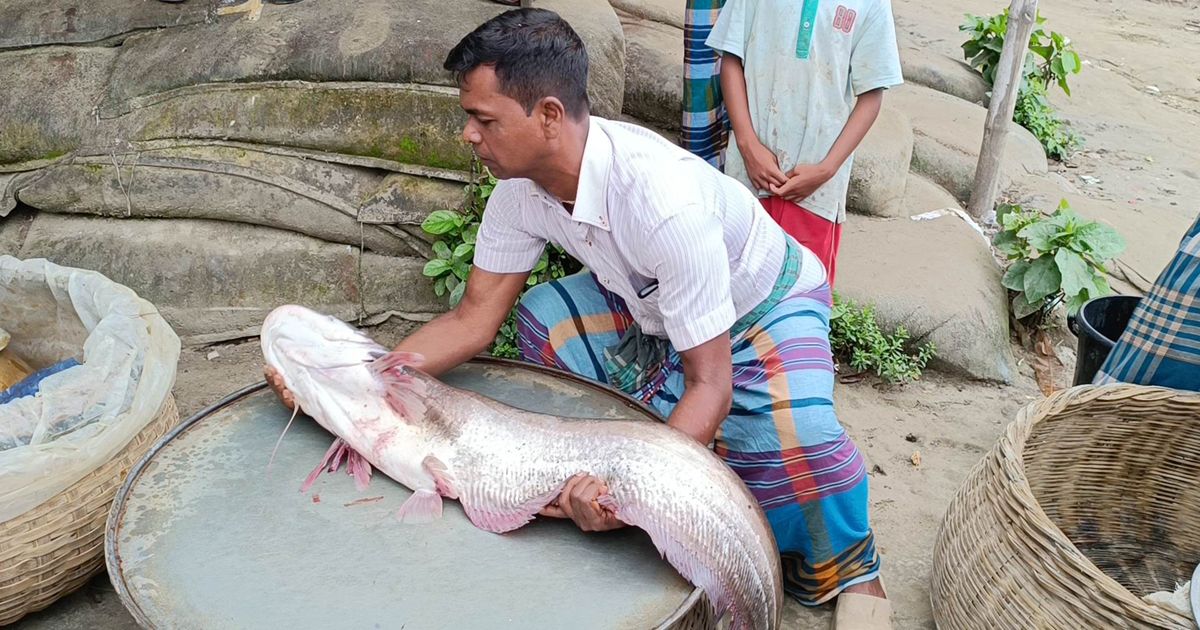 পদ্মায় জেলের জালে সাড়ে ১২ কেজির বোয়াল