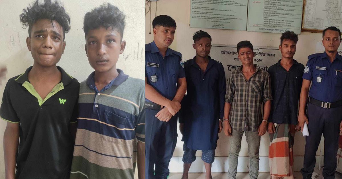 গত রোববার রাতে অভিযান চালিয়ে হত্যার সঙ্গে জড়িত থাকার অভিযোগে পাঁচজনকে গ্রেপ্তার করেছে পুলিশ। এরা হলেন চৌদ্দগ্রাম উপজেলার পেচাইমুড়ি এলাকার সুমন মিয়ার ছেলে সাইমন (১৬), পৌরসভার পশ্চিম শ্রীপুর এলাকার হারুন আর রশিদের ছেলে আব্দুল মান্নান (২৪), বাবুল মিয়ার ছেলে বাপ্পি (১৪), রামরায় গ্রাম এলাকার দুদু মিয়া ছেলে রবিন (২২) ও মৃত আলমগীর মিয়ার ছেলে সৈকত (১৬)।