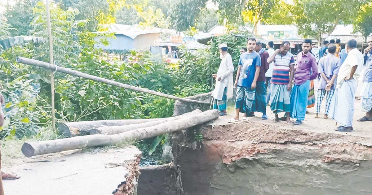 স্থানীয়দের সহায়তায় গাছের গুঁড়ি ফেলে ঝুঁকি নিয়ে মানুষ পারাপার হলেও, পার হতে পারছে না সাইকেল, মোটরসাইকেল, ভ্যান, রিকশা কিংবা গাড়ি। এই এলাকায় স্কুল-মাদ্রাসা ও বাজার থাকায় একদিকে যেমন পণ্য পরিবহনের সমস্যা হচ্ছে অন্যদিকে ছেলেমেয়েদের স্কুল ও মাদ্রাসায় যেতে পড়তে হচ্ছে ভোগান্তিতে। এমন অবস্থায় রাস্তাটি দ্রুত সংস্কারের দাবি স্থানীয়দের।