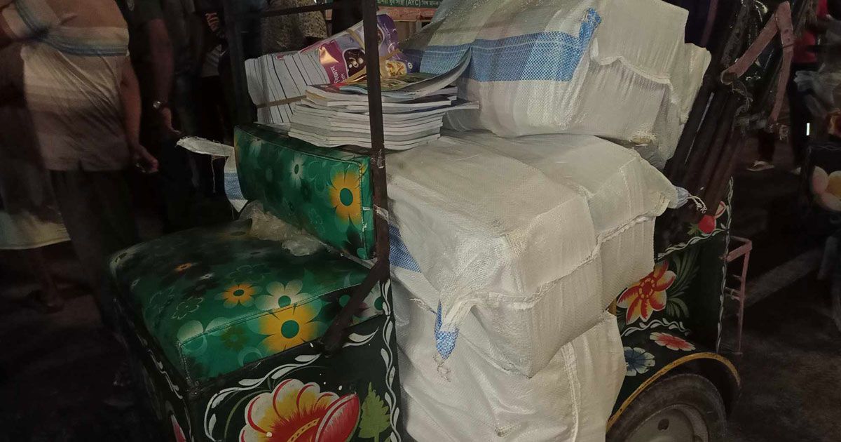 এসআই আরও বলেন, ‘নগরীর সিঅ্যান্ডবি মোড়ে দুটি রিকশাযোগে প্রাথমিকের বিভিন্ন শ্রেণির বই পাচার হচ্ছিল। পথে তাদের আটক করে বইগুলো জব্দ করা হয়। এসব বই থানা হেফাজতে রাখা হয়েছে। এ ঘটনায় আইনগত ব্যবস্থা নেয়া হবে। বিষয়টি প্রাথমিক শিক্ষা কর্মকর্তা সাইদুল ইসলামকে জানানো হয়েছে।’