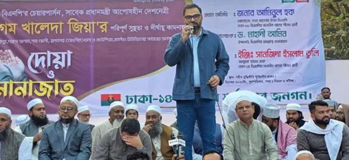 দোয়া মাহফিলে প্রধান অতিথির বক্তব্যে বিএনপি মনোনীত প্রার্থী ও সাবেক সচিব মো. আব্দুল বারী বলেন, দেশনেত্রী বেগম খালেদা জিয়া শুধু তিনবারের সফল প্রধানমন্ত্রীই নন, তিনি দেশের গণতন্ত্র ও ভোটাধিকারের আন্দোলনে আপোষহীন সাহসী নেতৃত্বের উজ্জ্বল দৃষ্টান্ত। মানুষের অধিকার, স্বাধীনতা ও ন্যায়বিচার প্রতিষ্ঠায় তাঁর অবদান জাতির ইতিহাসে অম্লান হয়ে থাকবে। আজ তিনি অসুস্থ—আমরা তাঁর দ্রুত আরোগ্য কামনা করি। আল্লাহর কাছে প্রার্থনা, তিনি যেন সুস্থ হয়ে আবারও জনগণের অধিকার প্রতিষ্ঠার সংগ্রামে নেতৃত্ব দিতে পারেন।