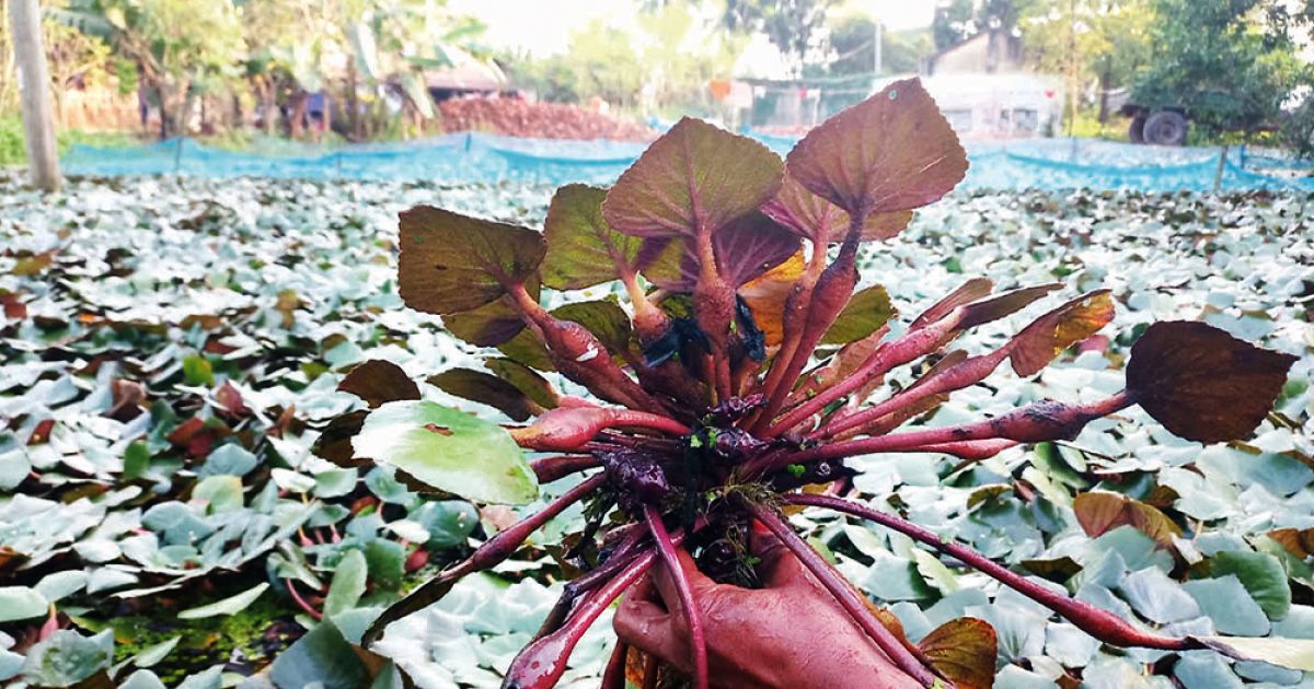অনেকটা শিঙাড়ার মতো দেখায়। আর এই পাতার নিচেই লুকিয়ে আছে ত্রিকোণাকৃতির এক ফল, যার নাম পানিফল। এখন এই জলজ ফলই জয়পুরহাটের চাষিদের কাছে ‘সোনার ফসল’ হয়ে উঠেছে। কচি অবস্থায় লাল আর পেকে গেলে কালো বর্ণ ধারণ করা এই ফল চাষ করে ভালো আয়ের মুখ দেখছেন তারা।