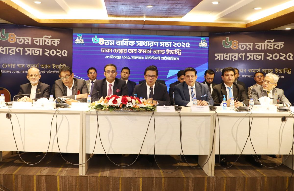 মঙ্গলবার (২৩ ডিসেম্বর) সংগঠনের ৬৪তম বার্ষিক সাধারণ সভায় এ আহ্বান জানানো হয়। ডিসিসিআই সভাপতি তাসকীন আহমেদ সভায় সভাপতিত্ব করেন।