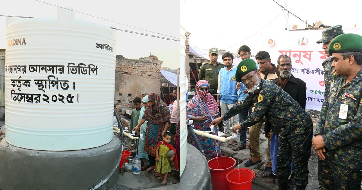 সাম্প্রতিক অগ্নিকাণ্ডে ক্ষতিগ্রস্ত কড়াইল বস্তিবাসীর জন্য নিরাপদ পানির চরম সংকট মোকাবিলায় বাংলাদেশ আনসার ও ভিডিপি জরুরি মানবিক সহায়তার অংশ হিসেবে দুটি বিশুদ্ধ পানির ট্যাংক স্থাপন ও উদ্বোধন করেছে। ক্ষতিগ্রস্তদের তাৎক্ষণিক প্রয়োজন ও জনস্বাস্থ্যের ঝুঁকি বিবেচনায় নেওয়া এই উদ্যোগ দুর্যোগ-উত্তর পরিস্থিতিতে স্থানীয়দের জন্য দ্রুত স্বস্তি, নিরাপত্তা ও আশার বার্তা নিয়ে এসেছে।