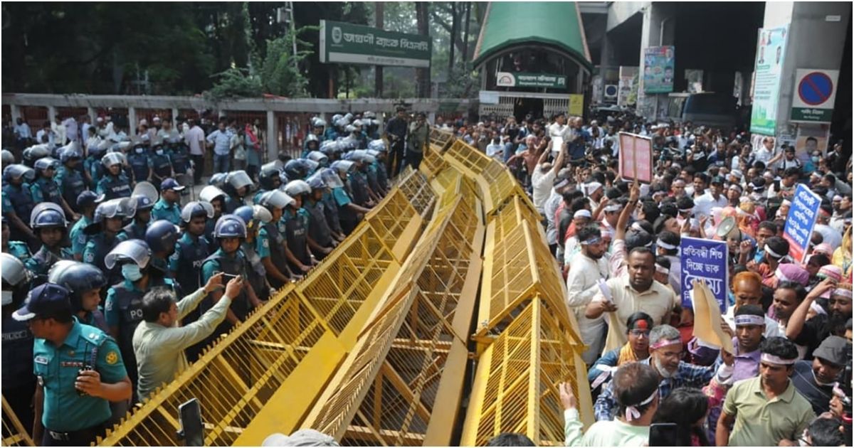 আজ রোববার দুপুর দেড়টার দিকে প্রেস ক্লাবের সামনে থেকে শিক্ষকরা মিছিল নিয়ে পল্টন মোড় ঘুরে এসে সচিবালয়ে প্রবেশের চেষ্টা করেন। এ সময় পুলিশ তাদের সচিবালয়ের ৫ নম্বর গেটের সামনে আটকে দেয়।