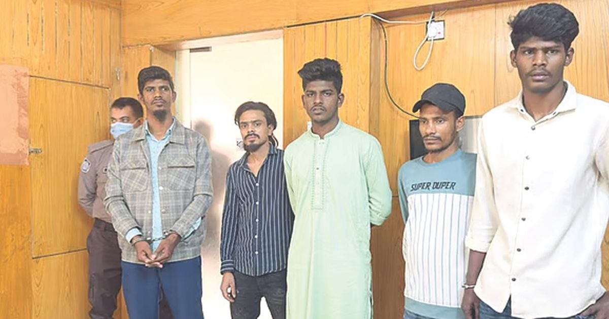গ্রেপ্তারকৃত ব্যক্তিরা হলেন রোহান খাঁন রাসেল (৩০), মারুফ (৩৫), হাসান (২৩), মো. রায়হান (২২) ও মো. রোমান (২৪)।