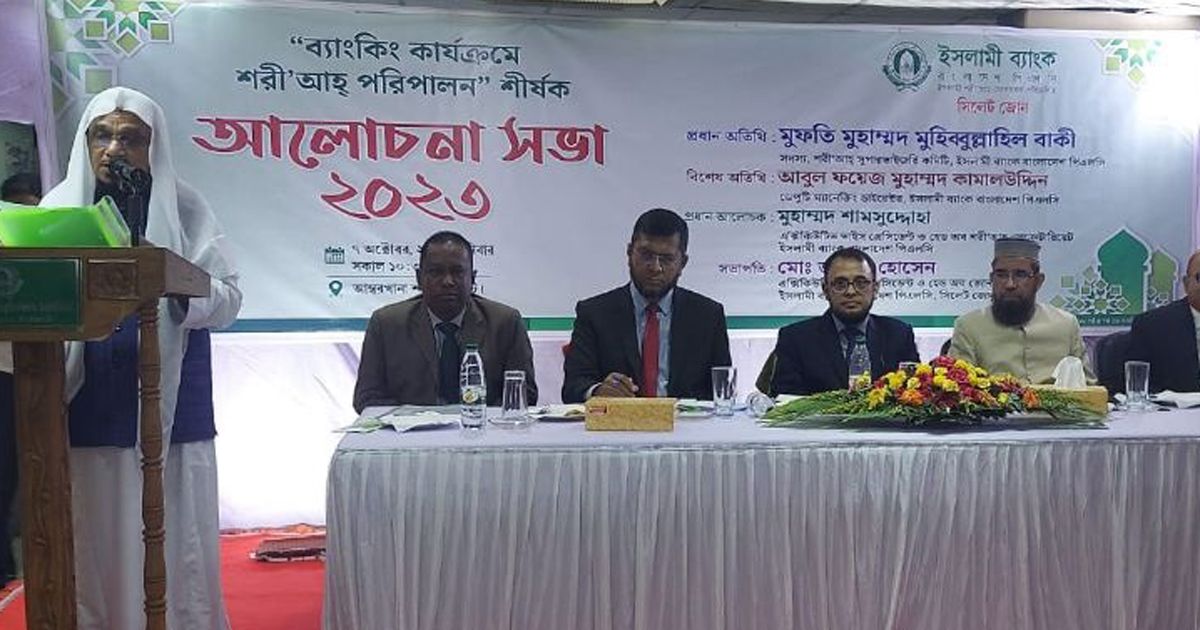 ইসলামী ব্যাংক বাংলাদেশ পিএলসির সিলেট জোনের গ্রাহকদের নিয়ে ‘ব্যাংকিং কার্যক্রমে শরিয়াহ পরিপালন’ শীর্ষক আলোচনা সভা গত ৭ অক্টোবর আম্বরখানা শাখায় অনুষ্ঠিত হয়েছে। অনুষ্ঠানে ব্যাংকের শরিয়াহ সুপারভাইজরি কমিটির সদস্য মাওলানা মুফতি মুহাম্মদ মুহিব্বুল্লাহিল বাকী প্রধান অতিথি হিসেবে বক্তব্য দেন। বিশেষ অতিথি হিসেবে বক্তব্য দেন ব্যাংকের ডেপুটি ম্যানেজিং ডাইরেক্টর আবুল ফায়েজ মুহাম্মাদ কামালউদ্দিন।