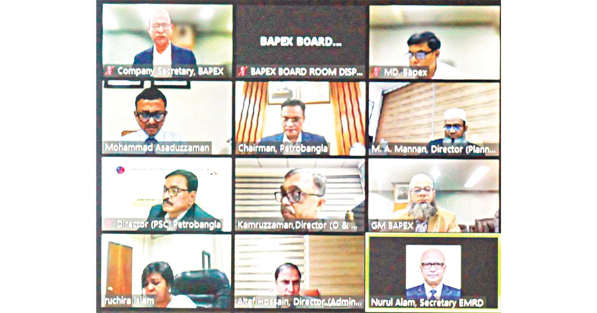 বাংলাদেশ পেট্রোলিয়াম এক্সপ্লোরেশন অ্যান্ড প্রোডাকশন কোম্পানি লিমিটেডের (বাপেক্স) ৩৪তম বার্ষিক সাধারণ সভা গতকাল বুধবার সন্ধ্যায় ভার্চুয়াল সিস্টেমে অনুষ্ঠিত হয়। বাপেক্স পরিচালনা পর্ষদের চেয়ারম্যান এবং জ্বালানি ও খনিজ সম্পদ বিভাগের সচিব নূরুল আলমের সভাপতিত্বে অনুষ্ঠিত ২০২২-২০২৩ অর্থবছরের বার্ষিক সাধারণ সভায় কোম্পানির সম্মানিত শেয়ারহোল্ডাররা এবং পরিচালনা পর্ষদের সদস্যবৃন্দ অংশগ্রহণ করেন।