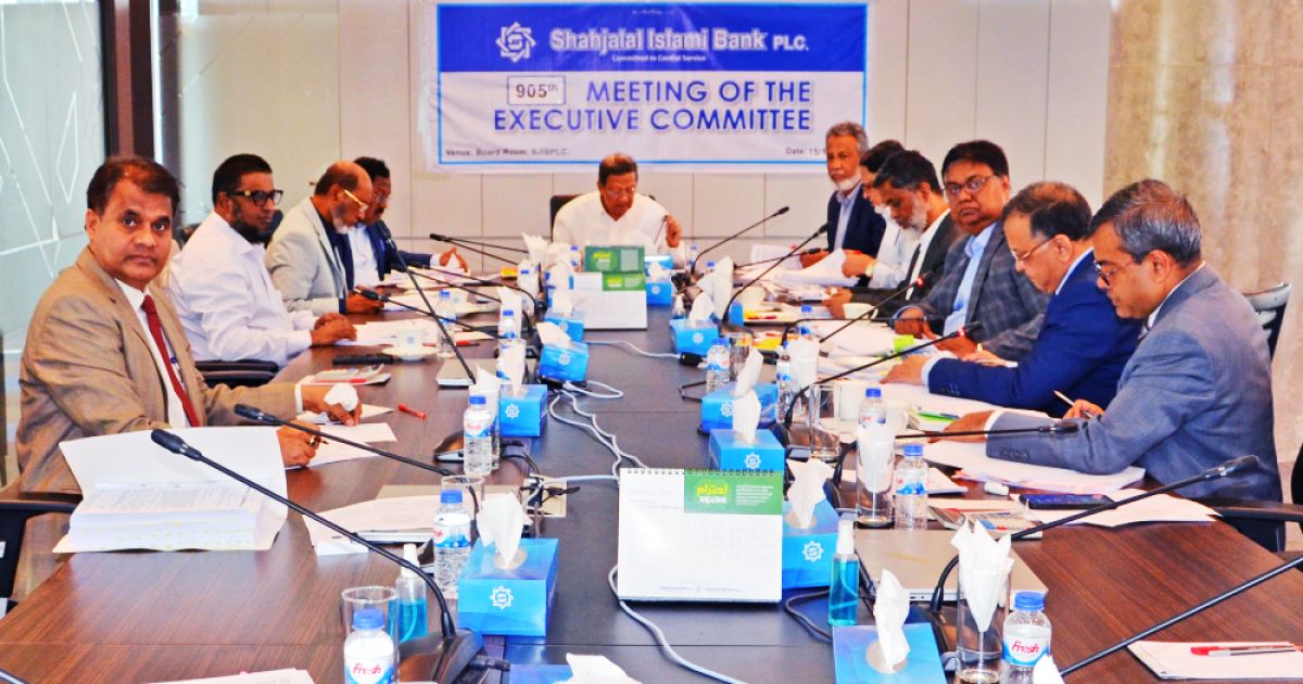 শাহ্জালাল ইসলামী ব্যাংক পিএলসি-এর নির্বাহী কমিটির ৯০৫তম সভা ১৫ অক্টোবর ২০২৫ইং তারিখে ব্যাংকের কর্পোরেট প্রধান কার্যালয়ের পর্ষদ সভাকক্ষে অনুষ্ঠিত হয়। সভায় সভাপতিত্ব করেন ব্যাংকের নির্বাহী কমিটির চেয়ারম্যান জনাব আক্কাচ উদ্দিন মোল্লা। সভায় বিভিন্ন খাতে অর্থায়ন এবং ব্যাংকিং সম্পর্কিত বিষয়াবলী নিয়ে আলোচনা করা হয়। সভায় অন্যান্যদের মধ্যে ব্যাংকের নির্বাহী কমিটির ভাইস-চেয়ারম্যান জনাব ফকির আখতারুজ্জামান, ব্যাংকের পরিচালক ও কমিটির সদস্যবৃন্দ জনাব মো: সানাউল্লাহ সাহিদ, জনাব মহিউদ্দিন আহমেদ, ইঞ্জিনিয়ার মো: তৌহীদুর রহমান এবং জনাব মোহাম্মদ ইউনুছ উপস্থিত ছিলেন। উক্ত সভায় বিশেষ আমন্ত্রণে ব্যাংকের পরিচালক জনাব খন্দকার শাকিব আহমেদ উপস্থিত ছিলেন। এছাড়া সভায় ব্যাংকের ব্যবস্থাপনা পরিচালক জনাব মোসলেহ্ উদ্দীন আহমেদ এবং কোম্পানি সচিব জনাব মো: আবুল বাশার উপস্থিত ছিলেন।