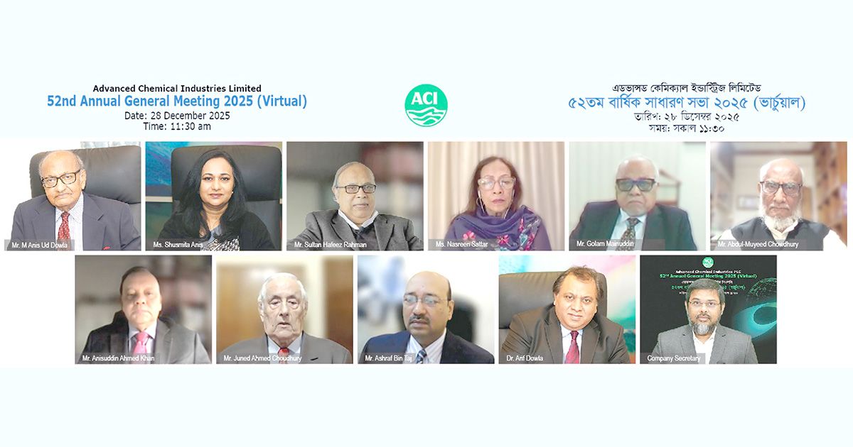 দেশের অন্যতম শীর্ষস্থানীয় শিল্পগোষ্ঠী এডভান্সড কেমিক্যাল ইন্ডাষ্ট্রিজ পিএলসি (এসিআই) তাদের শেয়ারহোল্ডারদের জন্য ২৫ শতাংশ নগদ লভ্যাংশ প্রদানের ঘোষণা দিয়েছে। গত ২৮ ডিসেম্বর ২০২৫, রবিবার ডিজিটাল প্ল্যাটফর্মে আয়োজিত কোম্পানির ৫২তম বার্ষিক সাধারণ সভায় (এজিএম) এই সিদ্ধান্ত সর্বসম্মতিক্রমে অনুমোদিত হয়। সভায় সভাপতিত্ব করেন এসিআই-এর চেয়ারম্যান জনাব এম আনিস উদ দৌলা।