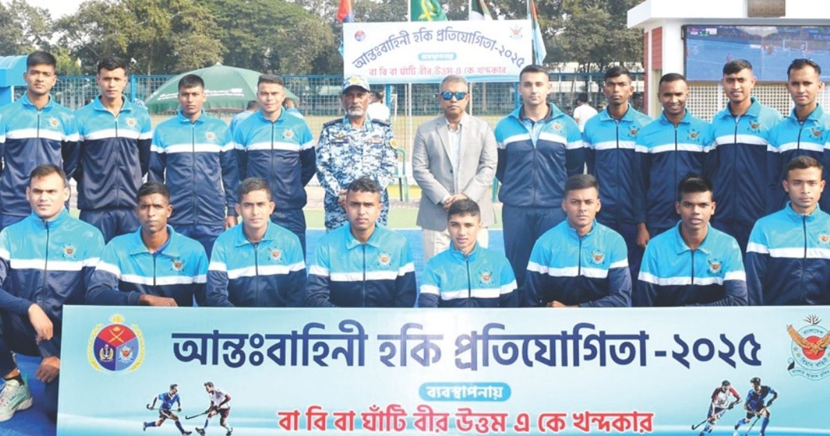 আন্তঃবাহিনী হকি প্রতিযোগিতা-২০২৫ এর উদ্বোধনী অনুষ্ঠান বাংলাদেশ বিমান বাহিনীর সার্বিক ব্যবস্থাপনায় গত শনিবার (২০ ডিসেম্বর) ঢাকায় অবস্থিত বিমান বাহিনী ঘাঁটি বীর উত্তম এ কে খন্দকার এর হকি মাঠে অনুষ্ঠিত হয়েছে।