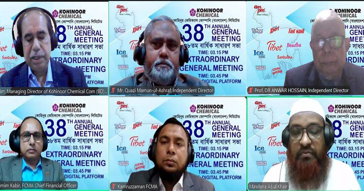 দেশের স্বনামধন্য প্রসাধনী প্রস্তুতকারক ও বিপণনকারী প্রতিষ্ঠান কোহিনূর কেমিক্যাল কোম্পানী (বাংলাদেশ) লিমিটেড-এর ৩৮তম বার্ষিক সাধারণ সভা ৭ ডিসেম্বর, ২০২৫ (রবিবার) বিকাল ৩টা ১৫ মিনিটে ডিজিটাল প্ল্যাটফর্মে অনুষ্ঠিত হয়।