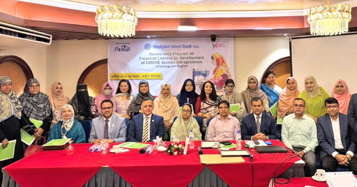 শাহ্জালাল ইসলামী ব্যাংক পিএলসি এর করপোরেট প্রধান কার্যালয়ের এসএমই ও কৃষি বিনিয়োগ বিভাগ-এর উদ্যোগে ১৮ অক্টোবর ২০২৫ তারিখে চট্টগ্রামের স্থানীয় এক হোটেলে “সিএমএসএমই নারী উদ্যোক্তাদের উন্নয়ন ও ক্ষমতায়ন বিষয়ক আর্থিক সাক্ষরতা কর্মসূচি” এর আয়োজন করে। অনুষ্ঠানে চট্টগ্রাম উইমেন চেম্বার অব কমার্স অ্যান্ড ইন্ডাস্ট্রি-এর সভাপতি মিসেস আবিদা মোস্তফা প্রধান অতিথি হিসেবে উপস্থিত ছিলেন। এই কর্মসূচিটি ব্যাংকের চলমান উদ্যোগের অংশ, যার উদ্দেশ্য সিএমএসএমই খাতের সম্ভাবনাকে কাজে লাগিয়ে নারী উদ্যোক্তাদের আর্থিক অন্তর্ভুক্তি, উদ্যোক্তা উন্নয়ন এবং কর্মসংস্থানমুখী শিল্পোন্নয়নকে ত্বরান্বিত করা। এ আয়োজনের মাধ্যমে নারী উদ্যোক্তাদের ব্যাংকিং সেবায় সহজ প্রবেশাধিকার নিশ্চিতকরণ ও আর্থিক জ্ঞান বৃদ্ধি করাই মূল লক্ষ্য।