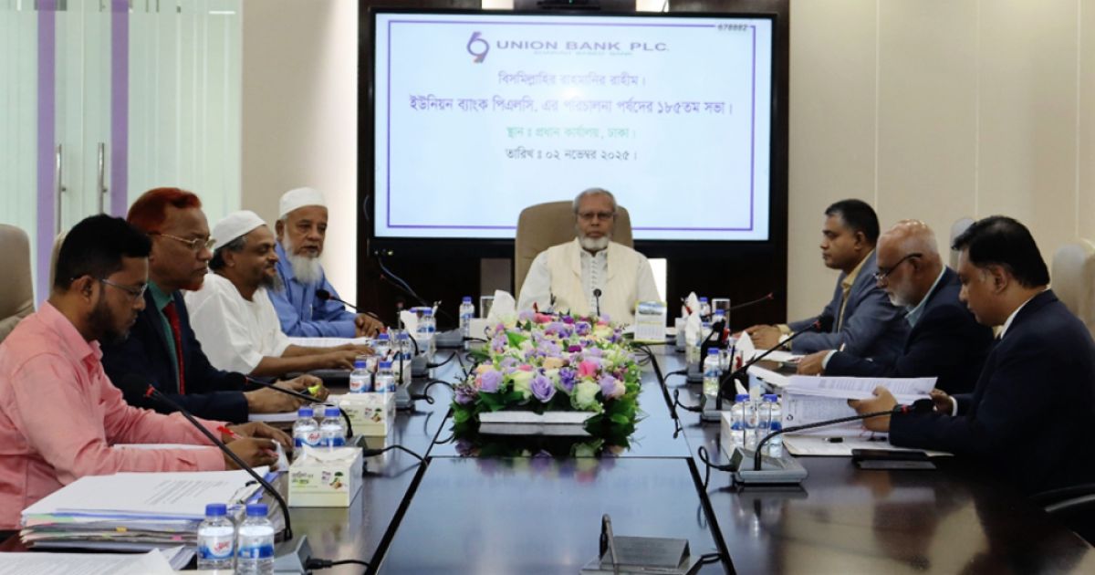 ইউনিয়ন ব্যাংক পিএলসি. এর পরিচালনা পর্ষদের ১৮৫তম সভা ব্যাংকের প্রধান কার্যালয়, গুলশান-১, ঢাকায় অনুষ্ঠিত হয়। সভায় সভাপতিত্ব করেন ব্যাংকের পরিচালনা পর্ষদের সম্মানিত চেয়ারম্যান জনাব মুঃ ফরীদ উদ্দীন আহমদ। সভায় পর্ষদের ঝুঁকি ব্যবস্থাপনা কমিটির চেয়ারম্যান জনাব মোঃ হুমায়ুন কবীর, নিরীক্ষা কমিটির চেয়ারম্যান জনাব শেখ জাহিদুল ইসলাম, এফসিএ, স্বতন্ত্র পরিচালক ড. শহিদুল ইসলাম জাহীদ এবং ব্যাংকের ব্যবস্থাপনা পরিচালক ও সিইও জনাব মোঃ হুমায়ুন কবির উপস্থিত ছিলেন। এছাড়াও উপ-ব্যবস্থাপনা পরিচালক জনাব মোহাম্মদ ইকবাল এবং জনাব মিজানুর রহমান কার্যোপলক্ষে সভায় যোগদান করেন। সভায় ব্যাংকের ব্যবসা সম্প্রসারণ ও গ্রাহকসেবার মান বৃদ্ধিকল্পে ইস্যুভিত্তিক বিশদ পর্যালোচনান্তে গুরুত্বপূর্ণ সিদ্ধান্ত গৃহীত হয়।