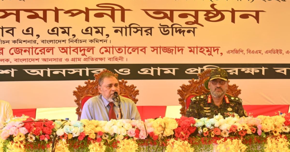 বাংলাদেশ আনসার ও গ্রাম প্রতিরক্ষা বাহিনীর মহাপরিচালক মেজর জেনারেল আবদুল মোতালেব সাজ্জাদ মাহমুদের সভাপতিত্বে আয়োজিত এ আড়ম্বরপূর্ণ অনুষ্ঠানে প্রধান অতিথি হিসেবে উপস্থিত ছিলেন মাননীয় প্রধান নির্বাচন কমিশনার জনাব এ. এম. এম. নাসির উদ্দিন।