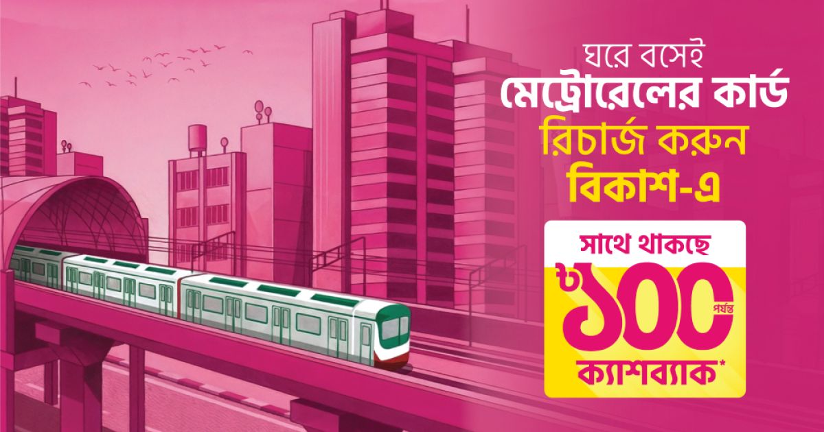 এখন ঘরে বসেই যাত্রীরা মেট্রোরেলের কার্ড রিচার্জ করতে পারছেন বিকাশ-এ। নতুন এই সুবিধার মাধ্যমে যাত্রীদের আর স্টেশন কিংবা ব্যাংকের বুথে গিয়ে লাইনে দাঁড়িয়ে কার্ড রিচার্জ করার ঝামেলা যেমন থাকলো না তেমনি মেট্রোরেল কর্তৃপক্ষের কার্ড রিচার্জ ব্যবস্থাপনাও হলো আরও সহজ, দ্রুত ও সাশ্রয়ী।