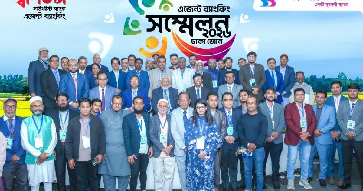 সাউথইস্ট ব্যাংক পিএলসি. সম্প্রতি ঢাকা জোনের এজেন্ট পার্টনারদের নিয়ে “বার্ষিক এজেন্ট ব্যাংকিং সম্মেলন ২০২৬” আয়োজন করেছে। উক্ত সম্মেলনে প্রধান অতিথি হিসেবে উপস্থিত ছিলেন ব্যাংকের চেয়ারম্যান এম.এ কাশেম এবং বিশেষ অতিথি হিসেবে উপস্থিত ছিলেন ব্যবস্থাপনা পরিচালক মোঃ খালিদ মাহমুদ খান। ঢাকা জোনের সকল এজেন্ট পার্টনারদের পাশাপাশি এই অনুষ্ঠানে ব্যাংকের প্রধান কার্যালয়ের ঊর্ধ্বতন কর্মকর্তা, ট্যাগড শাখা প্রধানগণ এবং এজেন্ট ব্যাংকিং বিভাগের কর্মকর্তাবৃন্দ অংশ নেন।