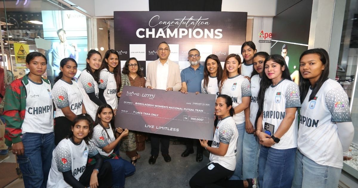 বাংলাদেশের নারী ক্রীড়াঙ্গনে মাইলফলক স্পর্শকারী সাফ নারী ফুটসাল চ্যাম্পিয়নশিপ ২০২৬–এর শিরোপাজয়ী জাতীয় দলকে বিশেষ সংবর্ধনা প্রদান করেছে দেশীয় পোশাক ব্র্যান্ড টুরাগ অ্যাকটিভ। দেশের নারী ক্রীড়াবিদদের অবিস্মরণীয় অর্জনকে স্বীকৃতি দেওয়ার পাশাপাশি এই গৌরবগাথাকে উদযাপন করতে প্রতিষ্ঠানটি এক ব্যতিক্রমী অনুষ্ঠানের আয়োজন করে।