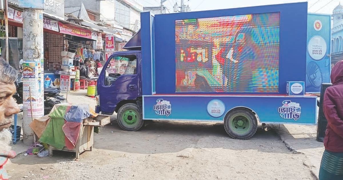 নির্বাচনী প্রচারণার অংশ হিসেবে গতকাল বুধবার সকালে কুষ্টিয়ার দৌলতপুর উপজেলার তারাগুনিয়া বাজারে সংস্কৃতিবিষয়ক মন্ত্রণালয়ের একটি ভ্রাম্যমাণ গাড়ির মাধ্যমে বিশেষ চলচ্চিত্র প্রদর্শনীর আয়োজন করা হয়। ‘দেশের চাবি আপনার হাতে’ প্রতিপাদ্যে আয়োজিত এ কর্মসূচিতে জুলাই গণঅভ্যুত্থান, জুলাই যোদ্ধা, আবরার ফাহাদ ও ফেলানী হত্যাকাণ্ডের ওপর নির্মিত প্রামাণ্যচিত্র প্রদর্শন করা হয়।