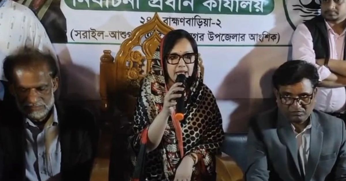 ব্রাহ্মণবাড়িয়া-২ (সরাইল ও আশুগঞ্জ) আসনের নির্বাচনি সমীকরণে বড় ধরনের পরিবর্তন এসেছে। এই আসনে ‘হাঁস’ প্রতীক নিয়ে লড়া স্বতন্ত্র প্রার্থী ব্যারিস্টার রুমিন ফারহানাকে আনুষ্ঠানিক সমর্থন দিয়েছে জাতীয় পার্টি। সোমবার রাতে সরাইল উপজেলার শাহবাজপুর গ্রামে নিজ নির্বাচনি কার্যালয়ে আয়োজিত এক সংবাদ সম্মেলনে এই ঘোষণা দেওয়া হয়। তবে সমর্থনের এই আনন্দের মাঝেই নিজের নেতাকর্মীদের প্রাণনাশের হুমকি ও নির্বাচনি এলাকায় কালো টাকা ছড়ানোর গুরুতর অভিযোগ তুলেছেন আলোচিত এই নারী প্রার্থী।