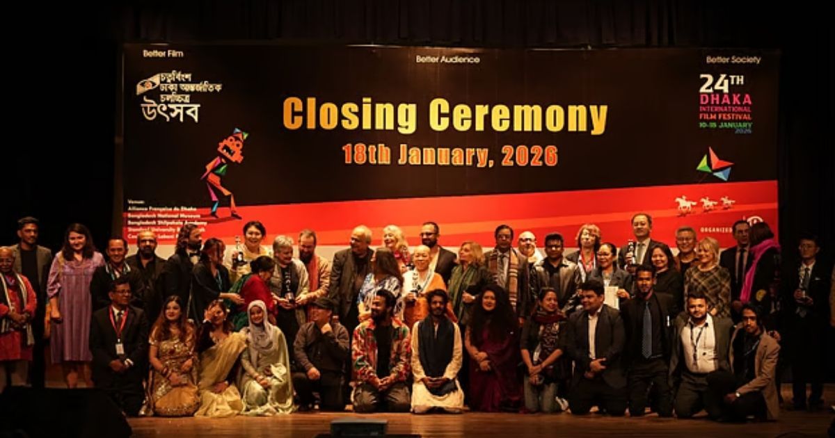 জাতীয় জাদুঘরের প্রধান মিলনায়তনে বর্ণাঢ্য আয়োজনের মধ্য দিয়ে পর্দা নামল ২৪তম ঢাকা আন্তর্জাতিক চলচ্চিত্র উৎসবের। রবিবার বিকেলে অনুষ্ঠিত সমাপনী অনুষ্ঠানে এশিয়ান কমপিটিশন বিভাগসহ বিভিন্ন বিভাগে বিজয়ীদের নাম ঘোষণা ও পুরস্কার প্রদান করা হয়। এবারের উৎসবে সেরা পূর্ণদৈর্ঘ্য চলচ্চিত্রের পুরস্কার জিতে নিয়েছে কিরগিজস্তানের সিনেমা ‘কুরাক’। বাস্তব ঘটনার ছায়া অবলম্বনে নির্মিত এই ছবিটি এর আগে দক্ষিণ কোরিয়ার বুসান আন্তর্জাতিক চলচ্চিত্র উৎসবেও কিম জিসুক পুরস্কারসহ দুটি সম্মাননা অর্জন করেছিল। সমাপনী অনুষ্ঠানে দেশি-বিদেশি চলচ্চিত্র নির্মাতা, শিল্পী ও কলাকুশলীদের মিলনমেলায় পরিণত হয় জাতীয় জাদুঘর প্রাঙ্গণ।
