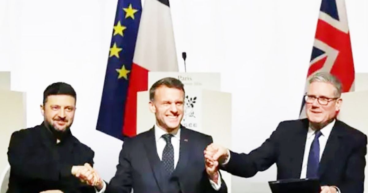 দুই দেশের ক্রমাগত হামলা-পালটা হামলার মাঝেই মঙ্গলবার প্যারিসে বৈঠকে বসে কিয়েভের ইউরোপীয় মিত্রদের জোট কোয়ালিশন অব দ্য উইলিং। আলোচনায় উঠে আসে যুদ্ধ পরবর্তী ইউক্রেনের নিরাপত্তা ইস্যুর প্রসঙ্গ। সভায় যুদ্ধবিরতি কার্যকর হলে কিয়েভের সুরক্ষায় সেনা পাঠানোর আনুষ্ঠানিক সিদ্ধান্তের কথা জানায় ফ্রান্স ও যুক্তরাজ্য। এ লক্ষ্যে জেলেনস্কির উপস্থিতিতে একটি ঘোষণাপত্রেও স্বাক্ষর করেন ব্রিটিশ প্রধানমন্ত্রী কিয়ার স্টারমার ও ফরাসি প্রেসিডেন্ট ইমানুয়েল ম্যাক্রোঁ।
