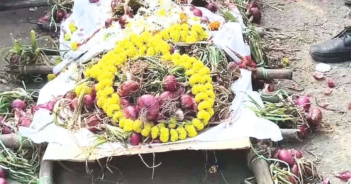 কোনো মানুষের নয়, ভারতে শেষকৃত্যের আয়োজন চলছে পেঁয়াজের। এ বছর বাংলাদেশে পেঁয়াজের রেকর্ড উৎপাদনের কারণে ভারতীয় ব্যবসায়ীরা চড়া দামে রপ্তানি করতে না পেরে হয়েছেন কার্যত পথে বসা।