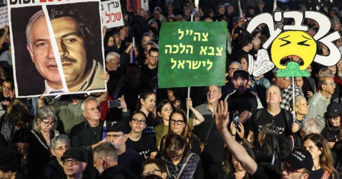ইসরায়েলের তেল আবিব শহরে দেশটির প্রধানমন্ত্রী বেনিয়ামিন নেতানিয়াহু ও তার সরকারের বিরুদ্ধে বিক্ষোভে নেমেছে হাজারো মানুষ। শনিবার রাতে ইরান ও লেবাননের সঙ্গে যুদ্ধের ইস্যুতে এ বিক্ষোভ হয়।
