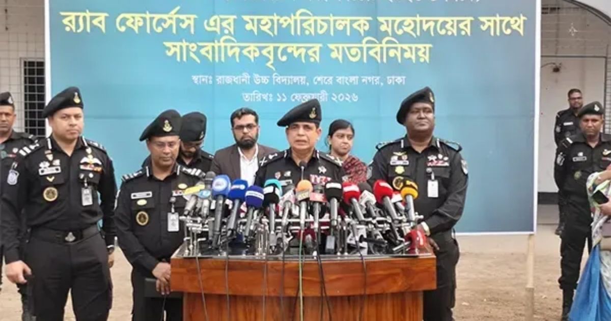 আসন্ন ত্রয়োদশ জাতীয় সংসদ নির্বাচন ও গণভোটকে কেন্দ্র করে কোনো প্রকার বিশৃঙ্খলা বা নাশকতার চেষ্টা করা হলে সর্বোচ্চ কঠোর ব্যবস্থা গ্রহণ করা হবে বলে হুঁশিয়ারি দিয়েছেন র্যাব মহাপরিচালক এ কে এম শহিদুর রহমান। বুধবার (১১ ফেব্রুয়ারি) বিকেলে রাজধানীর মানিক মিয়া অ্যাভিনিউ সংলগ্ন রাজধানী উচ্চ বিদ্যালয় মাঠে আয়োজিত এক সংবাদ সম্মেলনে তিনি জানান যে, নির্বাচনের ফলাফল ঘোষণার পর তা মেনে না নিয়ে অস্থিরতা তৈরির চেষ্টা করলে সংশ্লিষ্টদের কোনো ছাড় দেওয়া হবে না।