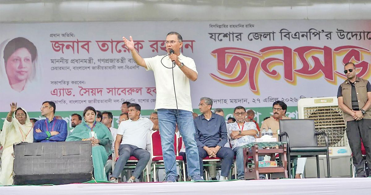 জনগণের শান্তি নষ্ট করে হরতাল করার সেই সুযোগ কাউকে দেয়া হবে না বলে স্পষ্ট জানিয়ে দিয়েছেন বিএনপি চেয়ারম্যান ও প্রধানমন্ত্রী তারেক রহমান। তিনি বলেছেন, বিএনপিকে যারা ফ্যাসিবাদের দোসর বলে, তারাই ফ্যাসিবাদের সঙ্গে গোপনে বৈঠক করছে। যারা ৭১ ও ২০০৮ সালে মানুষকে বিভ্রান্ত করেছে, তারা ২০২৬ সালেও মানুষকে বিভ্রান্ত করার চেষ্টা করছে। তাদের বিষয়ে জনগণকে সতর্ক থাকতে হবে। ২০ কোটি মানুষের ৪০ কোটি হাতকে দেশ গঠনে, মানুষের ভাগ্য পরিবর্তনে কাজে লাগাতে হবে। তাহলেই ভাগ্যের পরিবর্তন ঘটবে। সোমবার (২৭ এপ্রিল) বিকালে যশোর ঈদগাহ ময়দানে জেলা বিএনপি আয়োজিত জনসভায় প্রধান অতিথির বক্তব্যে তিনি এ কথা বলেন।