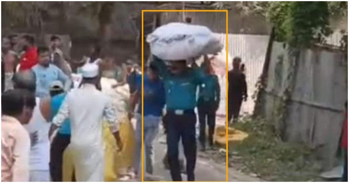 আগুন লাগার পর ধোঁয়ার কুণ্ডলি আর আতঙ্কের মধ্যেই ওসি মো. খালিদ উদ্ধারকাজে ঝাঁপিয়ে পড়েন। তাকে বস্তা মাথায় নিয়ে উদ্ধার করতে দেখে আশপাশের মানুষও উদ্ধারকাজে যোগ দেন।