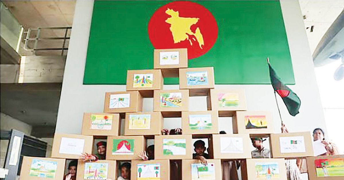 শিশুদের নির্মাণ করা এই দেয়াল আগামী এক সপ্তাহ প্রদর্শন করবে মুক্তিযুদ্ধ জাদুঘর।
