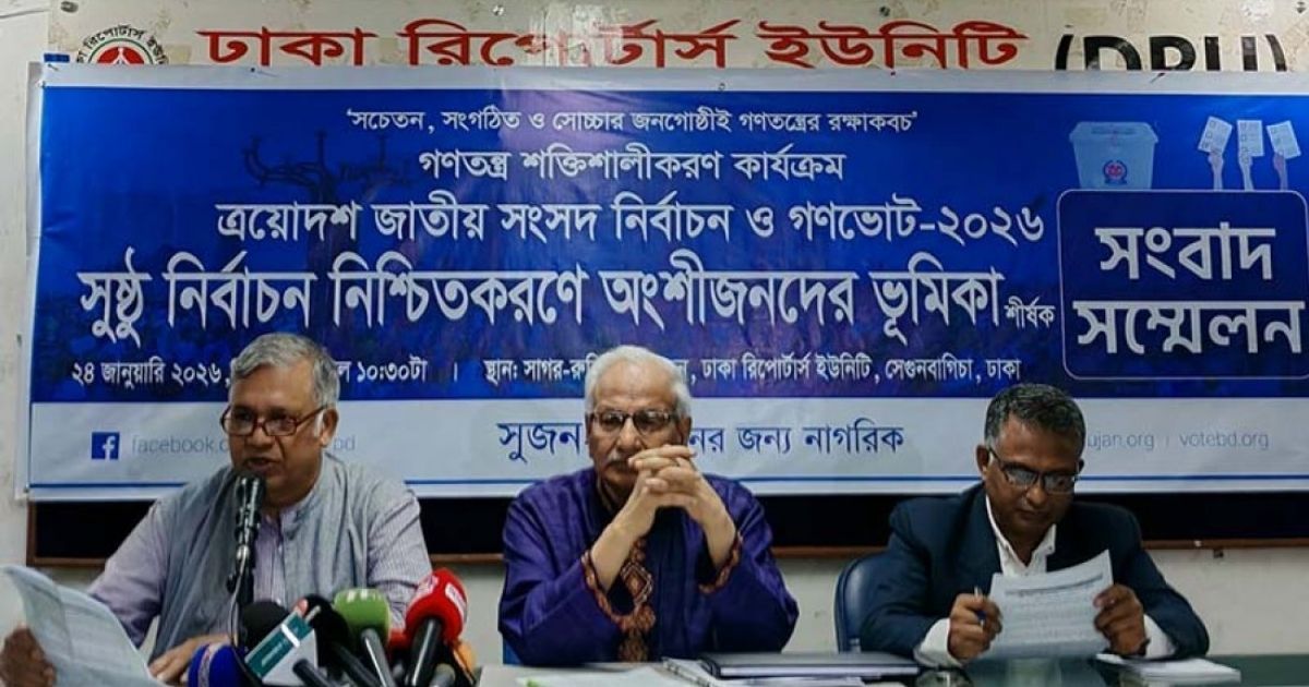 আসন্ন ত্রয়োদশ জাতীয় সংসদ নির্বাচন ও গণভোট সামনে রেখে একটি অবাধ, নিরপেক্ষ ও অংশগ্রহণমূলক নির্বাচনী পরিবেশ নিশ্চিত করতে অংশীজনদের ভূমিকা নিয়ে শনিবার (২৪ জানুয়ারি) ঢাকা রিপোর্টার্স ইউনিটিতে সংবাদ সম্মেলন করেছে সুশাসনের জন্য নাগরিক (সুজন)। উক্ত সম্মেলনে সুজন সম্পাদক বদিউল আলম মজুমদার গুরুত্বারোপ করেন যে, নির্বাচন পরিচালনার প্রধান দায়িত্ব নির্বাচন কমিশনের হলেও একটি সার্থক নির্বাচনের জন্য সরকার, রাজনৈতিক দল, আইনশৃঙ্খলা রক্ষাকারী বাহিনী, গণমাধ্যম ও ভোটারসহ সংশ্লিষ্ট সকলের সম্মিলিত প্রচেষ্টা অপরিহার্য। অংশীজনদের ভূমিকার গুরুত্ব তুলে ধরে তিনি বলেন, "নির্বাচন পরিচালনার মূল দায়িত্ব নির্বাচন কমিশনের হলেও একটি সুষ্ঠু নির্বাচনের সঙ্গে বহু অংশীজন জড়িত। সরকার, নির্বাচন কমিশন, রাজনৈতিক দল, আইনশৃঙ্খলা বাহিনী, গণমাধ্যম ও ভোটার সবার সম্মিলিত দায়িত্ব পালনের মাধ্যমেই অবাধ, নিরপেক্ষ ও শান্তিপূর্ণ নির্বাচন সম্ভব।"
