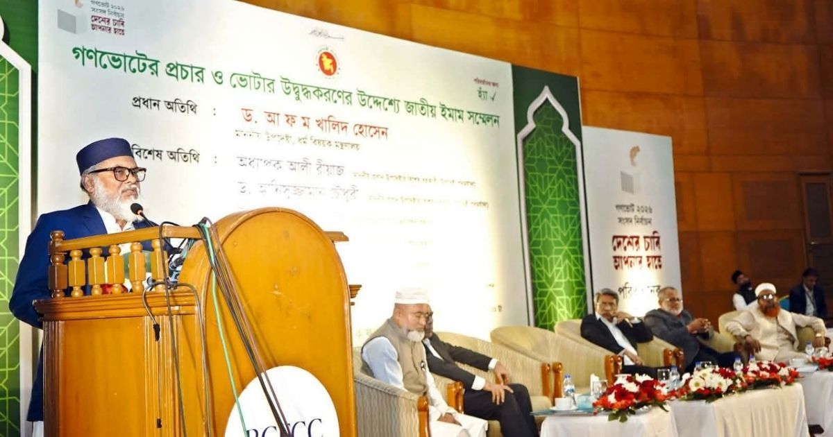 রাজধানীর আগারগাঁওয়ে বাংলাদেশ চীন মৈত্রী সম্মেলন কেন্দ্রে আয়োজিত জাতীয় ইমাম সম্মেলনে প্রধান অতিথির বক্তব্যে ধর্ম উপদেষ্টা ড. আ ফ ম খালিদ হোসেন গণভোট নিয়ে চলমান নানা বিভ্রান্তিকর তথ্যের বিরুদ্ধে কঠোর হুঁশিয়ারি প্রদান করেছেন। সংবিধানে ‘বিসমিল্লাহ’ ও রাষ্ট্রধর্ম ইসলামের অবস্থান নিয়ে জনমনে সংশয় তৈরির অপচেষ্টা সম্পর্কে সতর্ক করে তিনি ২৫ জানুয়ারি আয়োজিত এই সম্মেলনে বলেন, “একটি মিথ্যা প্রচারণা চালানো হচ্ছে যে, গণভোটে ‘হ্যাঁ’ ভোট দিলে সংবিধানে বিসমিল্লাহ থাকবে না, রাষ্ট্রধর্ম ইসলাম থাকবে না। কেউ বিভ্রান্ত হবেন না, এগুলো সব মিথ্যা প্রচারণা।”