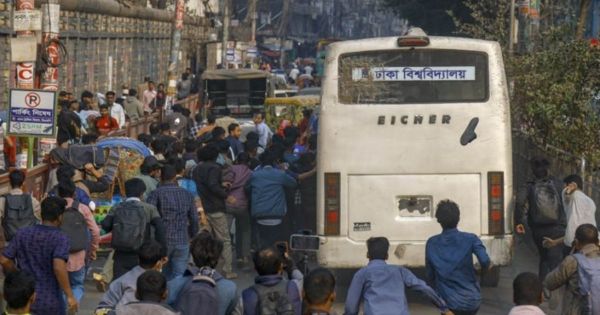 রাজধানীর সায়েন্সল্যাব মোড়ে সাত কলেজের শিক্ষার্থীদের চলমান অবরোধ কর্মসূচি চলাকালে ঢাকা বিশ্ববিদ্যালয়ের একটি বাসে ইটপাটকেল নিক্ষেপ ও ভাঙচুরের ঘটনা ঘটেছে। বৃহস্পতিবার (১৫ জানুয়ারি) দুপুর আনুমানিক আড়াইটার দিকে ঘটে যাওয়া এই অনাকাঙ্ক্ষিত হামলায় সাংবাদিক ও শিক্ষার্থীসহ অন্তত ৭ জন আহত হয়েছেন। প্রত্যক্ষদর্শীদের বর্ণনা অনুযায়ী, অবরোধের কারণে বাসটি আটকে পড়লে বাসে থাকা ঢাবি শিক্ষার্থী ও আন্দোলনরত সাত কলেজের শিক্ষার্থীদের মধ্যে তীব্র কথা-কাটাকাটি শুরু হয়। একপর্যায়ে প্রক্টরিয়াল টিম বাসটি ছাড়িয়ে নেওয়ার চেষ্টা করলে পেছন দিক থেকে ইটপাটকেল নিক্ষেপ করা হলে বাসের কাচ ভেঙে বেশ কয়েকজন আহত হন এবং বাসের বাইরের অংশ ক্ষতিগ্রস্ত হয়।