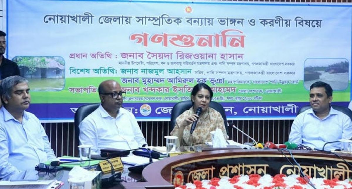 সৈয়দা রিজওয়ানা হাসান আজ সোমবার নোয়াখালীর জেলা প্রশাসকের সম্মেলন কক্ষে বন্যা ও ভাঙন নিয়ে আয়োজিত এক গণশুনানিতে প্রধান অতিথির বক্তৃতায় এসব কথা বলেন।