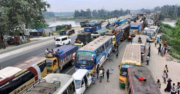 বাসের চালক বলেন, সড়কে কিছু জায়গায় আজকে দাঁড়াতে হচ্ছে। গতকালের থেকে আজ যাত্রী ও গাড়ির চাপ বেড়েছে। তাই যানজটের সৃষ্টি হয়েছে বলে জানান তিনি।