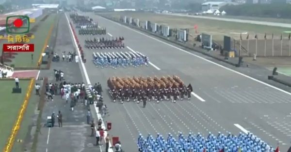 দীর্ঘ ১৮ বছরের প্রতীক্ষার অবসান ঘটিয়ে মহান স্বাধীনতা ও জাতীয় দিবস উপলক্ষে জাতীয় প্যারেড ময়দানে আবারও অনুষ্ঠিত হলো সশস্ত্র বাহিনীর বর্ণাঢ্য কুচকাওয়াজ। বৃহস্পতিবার (২৬ মার্চ) সকালে জাঁকজমকপূর্ণ এই আয়োজনে অংশ নিয়ে সম্মিলিত বাহিনীর অভিবাদন ও সালাম গ্রহণ করেন রাষ্ট্রপতি মো. সাহাবুদ্দিন। ২০০৮ সালের পর এই প্রথম স্বাধীনতা দিবসের আনুষ্ঠানিকতায় এমন বড় মাপের সামরিক প্রদর্শনী ও কুচকাওয়াজ যুক্ত হওয়ায় সাধারণ মানুষের মধ্যে ব্যাপক উৎসাহ-উদ্দীপনা লক্ষ্য করা গেছে।
