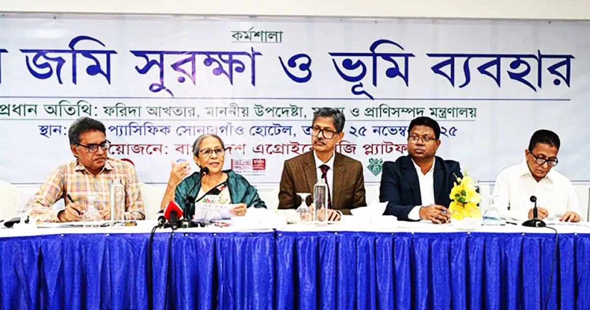 মঙ্গলবার রাজধানীর প্যান প্যাসিফিক সোনারগাঁও হোটেলে অনুষ্ঠিত ‘কৃষি জমি সুরক্ষা ও ভূমি ব্যবহার’-শীর্ষক জাতীয় কর্মশালায় প্রধান অতিথির বক্তব্যে তিনি এ কথা জানান। কর্মশালাটি আয়োজন করেছে বাংলাদেশ অ্যাগ্রোইকোলজি প্ল্যাটফর্ম।