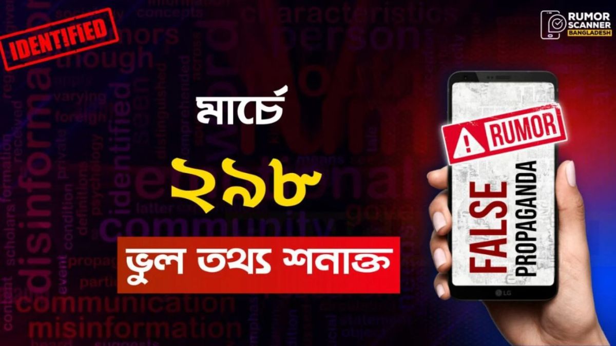 মার্চ মাসে ইন্টারনেটে ছড়িয়ে পড়া ২৯৮টি ভুল তথ্য শনাক্ত করেছে বাংলাদেশের ফ্যাক্টচেকিং প্রতিষ্ঠান রিউমার স্ক্যানার।