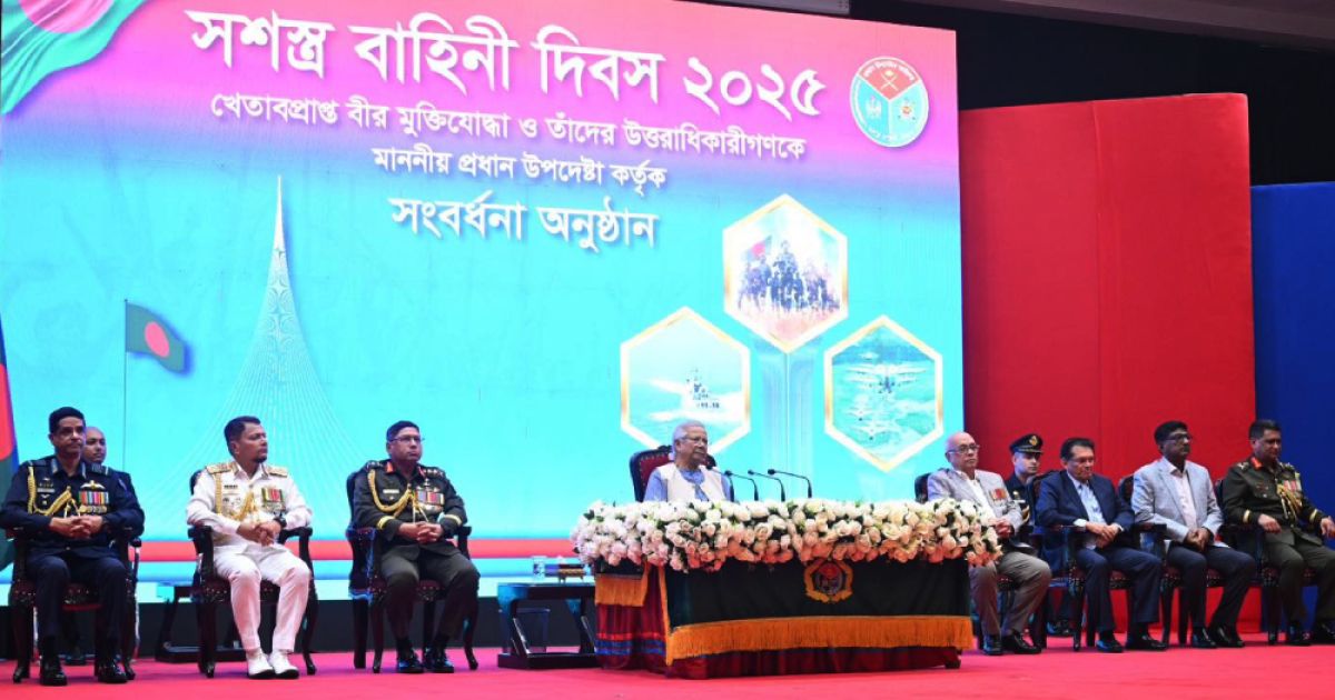 প্রধান উপদেষ্টা বলেন, মুক্তিকামী সেনা, নৌ ও বিমান বাহিনীর বীর সদস্যরা জীবনবাজি রেখে, পরিবারের ভবিষ্যতের কথা না ভেবে স্বাধীনতার যুদ্ধে ঝাঁপিয়ে পড়েছিলেন। তাঁদের সাহসেই জনসাধারণ প্রতিরোধ গড়ে তুলে দেশকে মুক্ত করতে সক্ষম হয়েছিল। যুদ্ধ সুসংগঠিত করার জন্য গঠিত বাংলাদেশ ফোর্সেস ১১টি সেক্টরে মুক্তিযোদ্ধাদের সামরিক ও গেরিলা প্রশিক্ষণ দিয়েছিল।