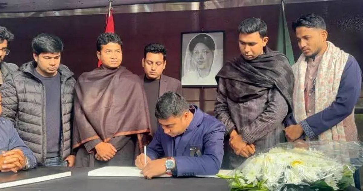 তিনবারের সাবেক প্রধানমন্ত্রী ও বিএনপি চেয়ারপারসন বেগম খালেদা জিয়ার স্মৃতির প্রতি গভীর শ্রদ্ধা জানাতে ঢাকা বিশ্ববিদ্যালয়ে (ঢাবি) একটি বিশেষ শোকবই উন্মুক্ত করেছে জাতীয়তাবাদী ছাত্রদল। আজ রবিবার সকালে বিশ্ববিদ্যালয়ের কেন্দ্রীয় লাইব্রেরির সামনে এই শোকবইটি সর্বসাধারণ ও শিক্ষার্থীদের জন্য উন্মুক্ত করা হয়। শোকবই উন্মুক্তকরণ অনুষ্ঠানে প্রধান অতিথি হিসেবে উপস্থিত থেকে শোকলিপি লিখে কর্মসূচির আনুষ্ঠানিক উদ্বোধন করেন ছাত্রদলের কেন্দ্রীয় সংসদের সাধারণ সম্পাদক নাছির উদ্দীন নাছির। এ সময় ঢাকা বিশ্ববিদ্যালয় শাখা ছাত্রদলের সভাপতি গণেশ চন্দ্র রায় সাহস, সাধারণ সম্পাদক নাহিদুজ্জামান শিপনসহ বিশ্ববিদ্যালয়ের বিভিন্ন হলের নেতাকর্মীরা সেখানে উপস্থিত ছিলেন। সাধারণ শিক্ষার্থীরা যেন তাঁদের প্রিয় নেত্রীকে নিয়ে মনের অনুভূতি ও চিন্তাভাবনা লিপিবদ্ধ করতে পারেন, সেই লক্ষ্যেই ছাত্রদলের পক্ষ থেকে এই সৃজনশীল উদ্যোগ গ্রহণ করা হয়েছে।