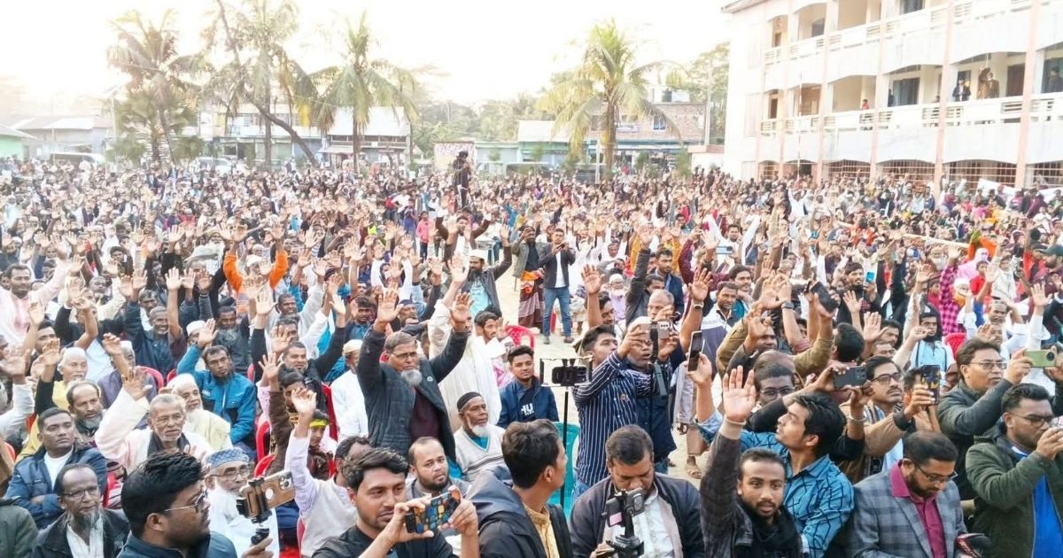 পূর্বঘোষিত কর্মসূচি অনুযায়ী মঙ্গলবার বিকাল ৩টায় পাথরঘাটার খলিফার হাট হাইস্কুল মাঠে আয়োজিত জনসভাটি শুরু হলেও সময় গড়ানোর সঙ্গে সঙ্গে তা জনসভা থেকে জনসমুদ্রে রূপ নেয়। আশপাশের বিভিন্ন এলাকা থেকে বিপুলসংখ্যক নেতা-কর্মী ও সাধারণ মানুষ জনসভায় অংশ নেন।