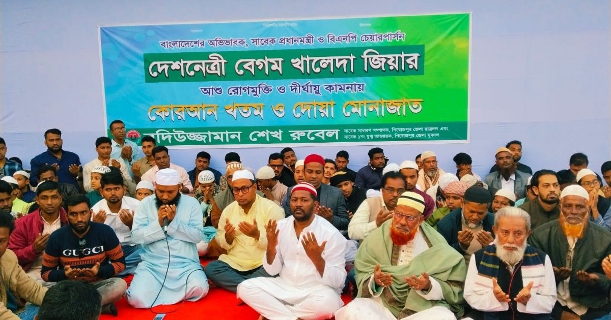 পিরোজপুরে বাংলাদেশ জাতীয়তাবাদী দল বিএনপির চেয়ারপার্সন, তিন বারের সাবেক প্রধানমন্ত্রী বেগম খালেদা জিয়ার আশু রোগমুক্তি কামনায় দোয়া মাহফিল অনুষ্ঠিত হয়েছে।