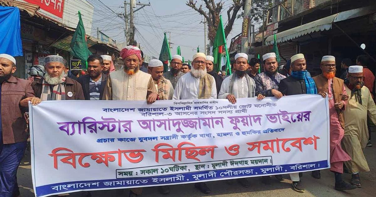 বরিশাল-৩ (মুলাদী-বাবুগঞ্জ) আসনে ত্রয়োদশ জাতীয় সংসদ নির্বাচনকে কেন্দ্র করে ১০ দলীয় ঐক্যজোটের মনোনীত প্রার্থী ও এবি পার্টির সাধারণ সম্পাদক ব্যারিস্টার আসাদুজ্জামান ফুয়াদের নির্বাচনী প্রচারণায় বাধা ও হামলার অভিযোগ উঠেছে। এ ঘটনার প্রতিবাদে মুলাদী উপজেলায় বিক্ষোভ মিছিল করেছে বাংলাদেশ জামায়াতে ইসলামী।