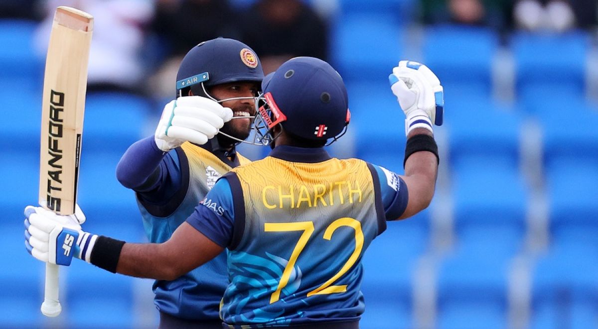 আয়ারল্যান্ডের বিপক্ষে জয় নিশ্চিত হওয়ার পর শ্রীলঙ্কার কুশল মেন্ডিস ও আসালাঙ্কার উল্লাস। ছবি: সংগৃহীত