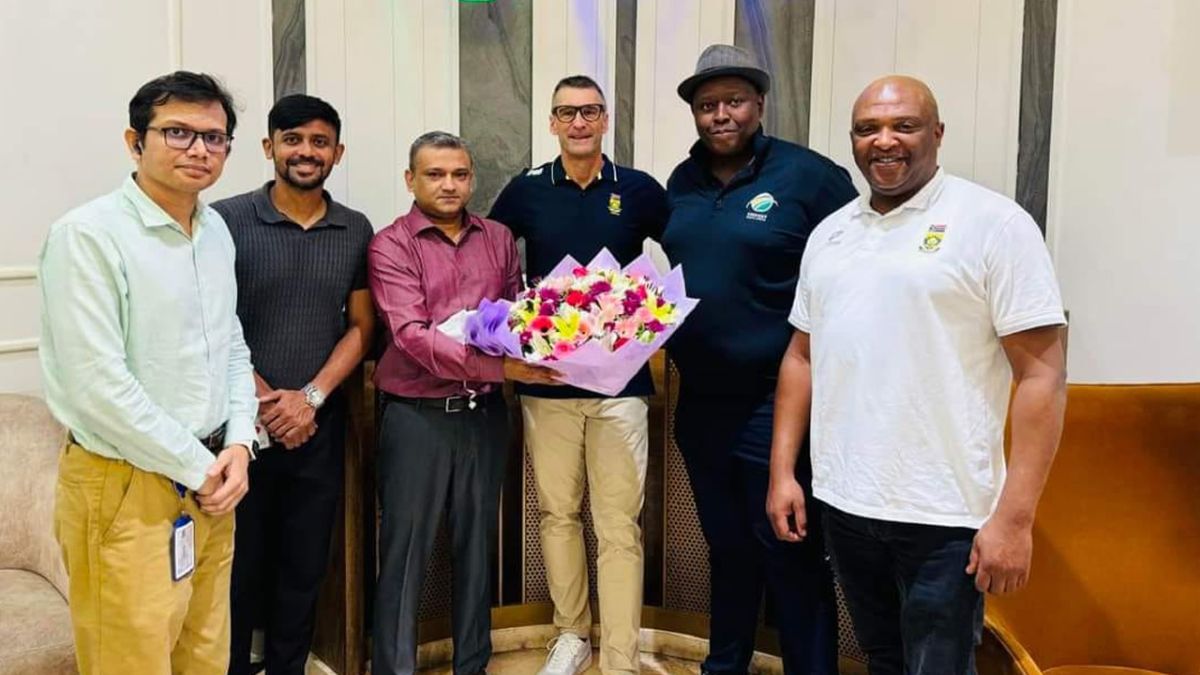 বাংলাদেশের বিপক্ষে দক্ষিণ আফ্রিকার আসন্ন দুটি টেস্ট সিরিজকে ঘিরে নিরাপত্তা ব্যবস্থা যাচাইয়ে সম্প্রতি ঢাকায় এসেছে আফ্রিকার একটি প্রতিনিধি দল। আজ সোমবার সকালে মিরপুরের জাতীয় ক্রিকেট স্টেডিয়ামের নিরাপত্তা যাচাই করে প্রতিনিধি দলটি। তার আগে গতকাল রোববার চট্টগ্রামের জহুর আহমেদ চৌধুরী স্টেডিয়ামও পরিদর্শন করেছেন তারা।