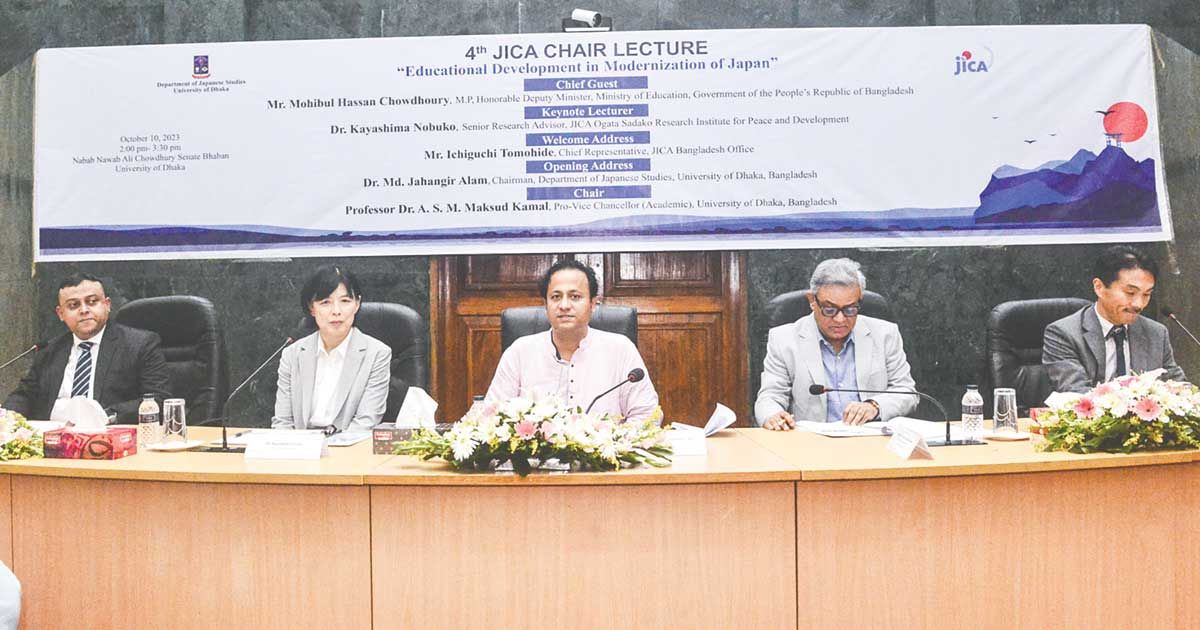 ঢাকা বিশ্ববিদ্যালয়ের জাপানিজ স্টাডিজ বিভাগ এবং জাপান ইন্টারন্যাশনাল কো-অপারেশন এজেন্সির (জাইকা) যৌথ উদ্যোগে ‘এডুকেশনাল ডেভেলপমেন্ট ইন মডারাইজেশন অব জাপান’ শীর্ষক চতুর্থ জাইকা চেয়ার লেকচার গত মঙ্গলবার নবাব নওয়াব আলী চৌধুরী সিনেট ভবন অডিটরিয়ামে অনুষ্ঠিত হয়।